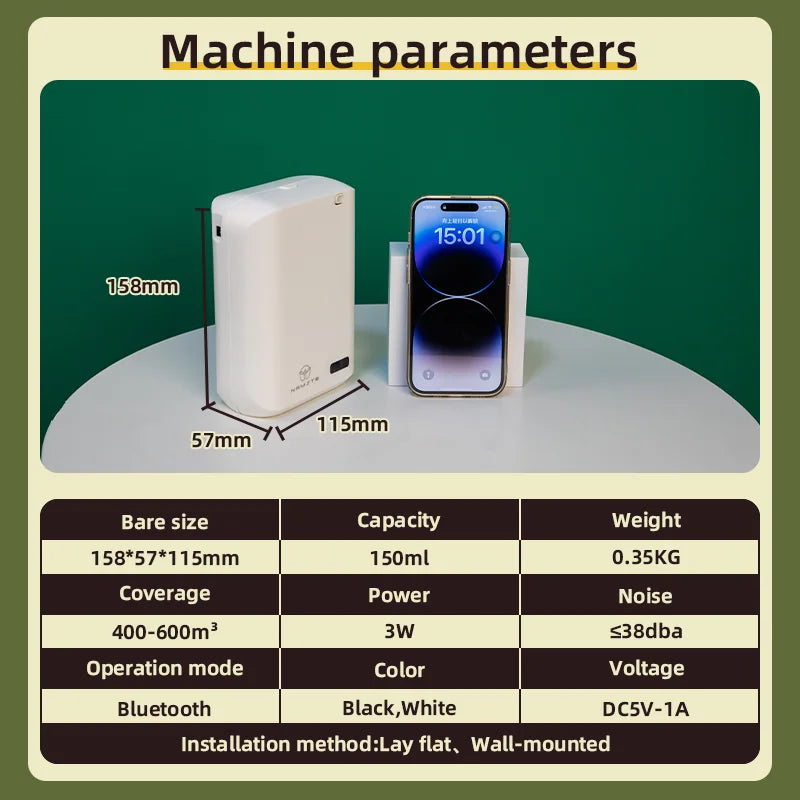 600m³ Bluetooth Aroma Diffuser Flat Lay Wall Hanging Perfume Fragrance Diffuser Home Flavoring Air Freshener Air Purifier Namste
