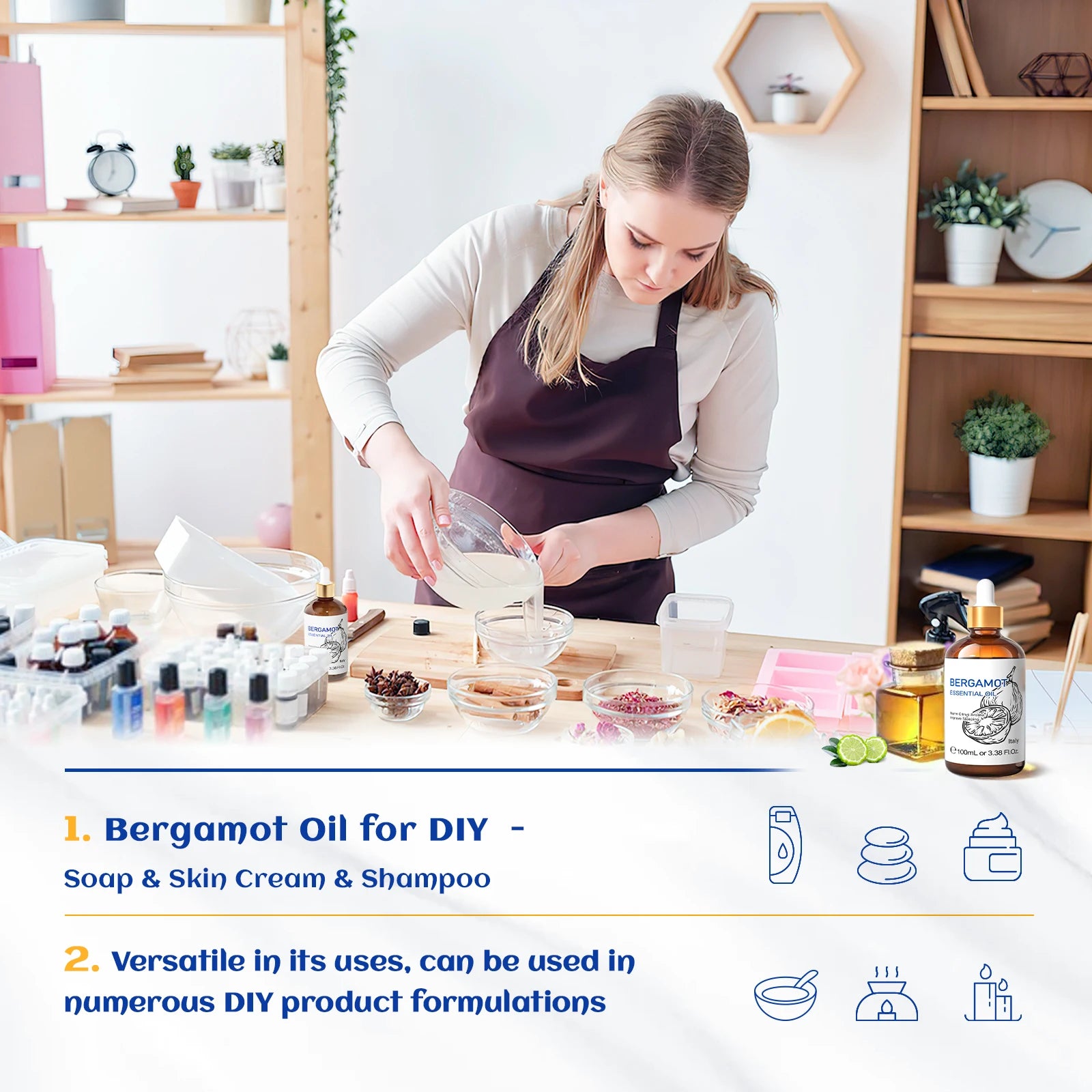 HIQILI 100% Pure Bergamot Essential Oil 100ml for Diffuser Blends Aromatherapy Uplifting Sweet Orange Grapefruit Lemon