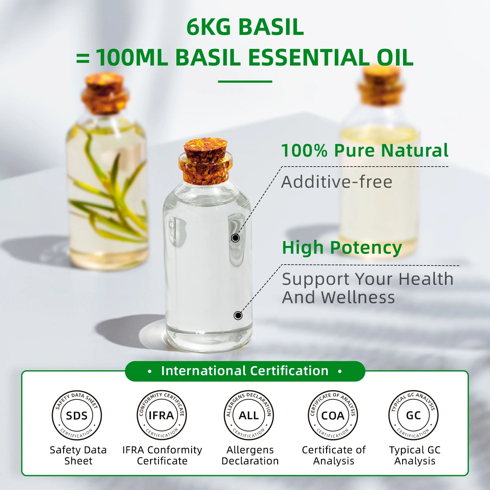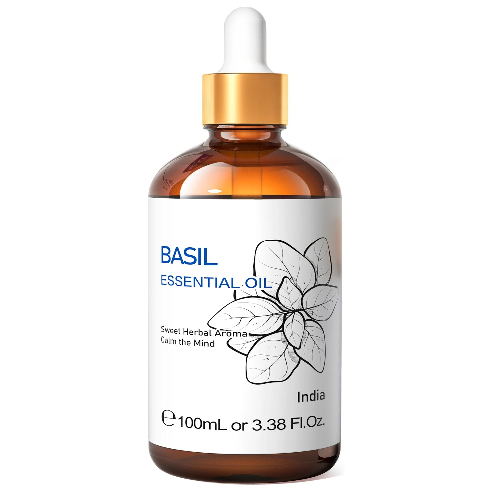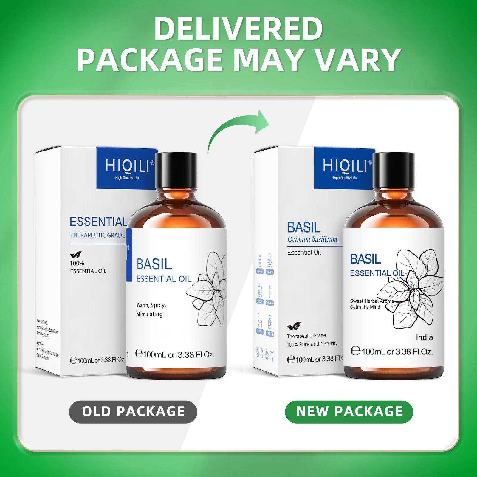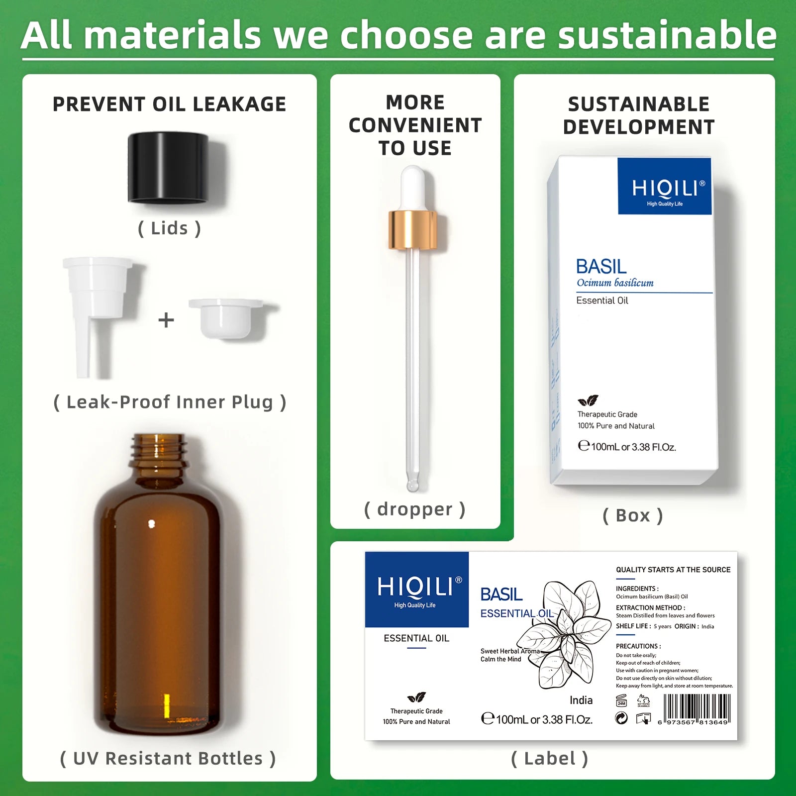 HIQILI 100ML Basil Essential Oils,100% Pure Nature for Aromatherapy, Diffuser, Humidifier, Massage, Energy, Improvement sleep