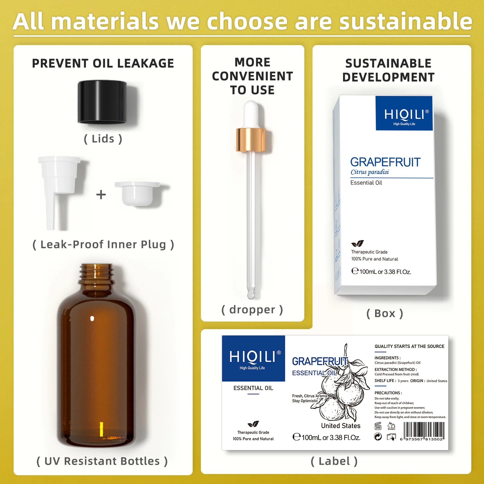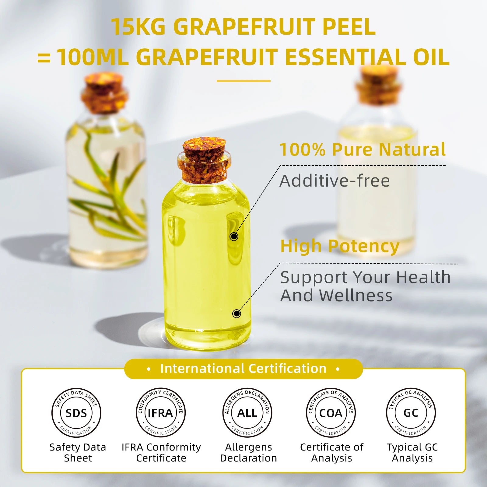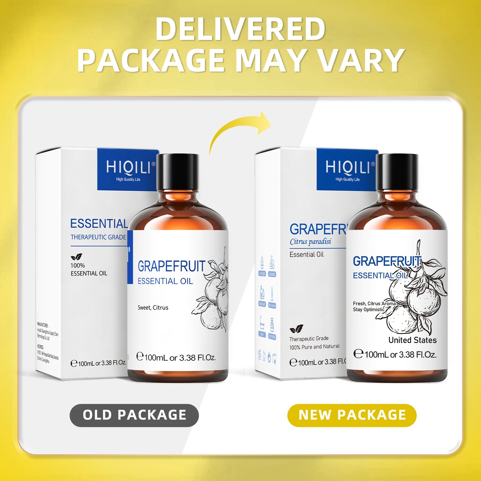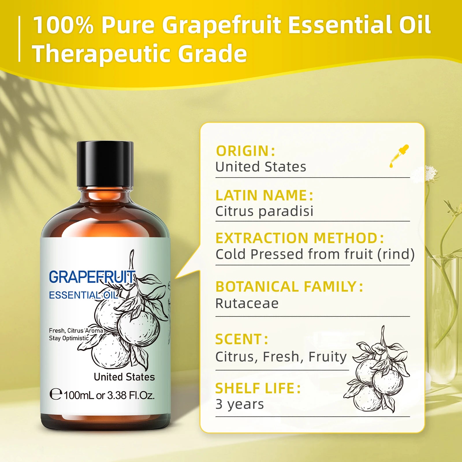 HIQILI 100ML Grapefruit Essential Oils,100% Pure Nature for Aromatherapy, Diffuser, Humidifier, Massage, Creating Aromatherapy