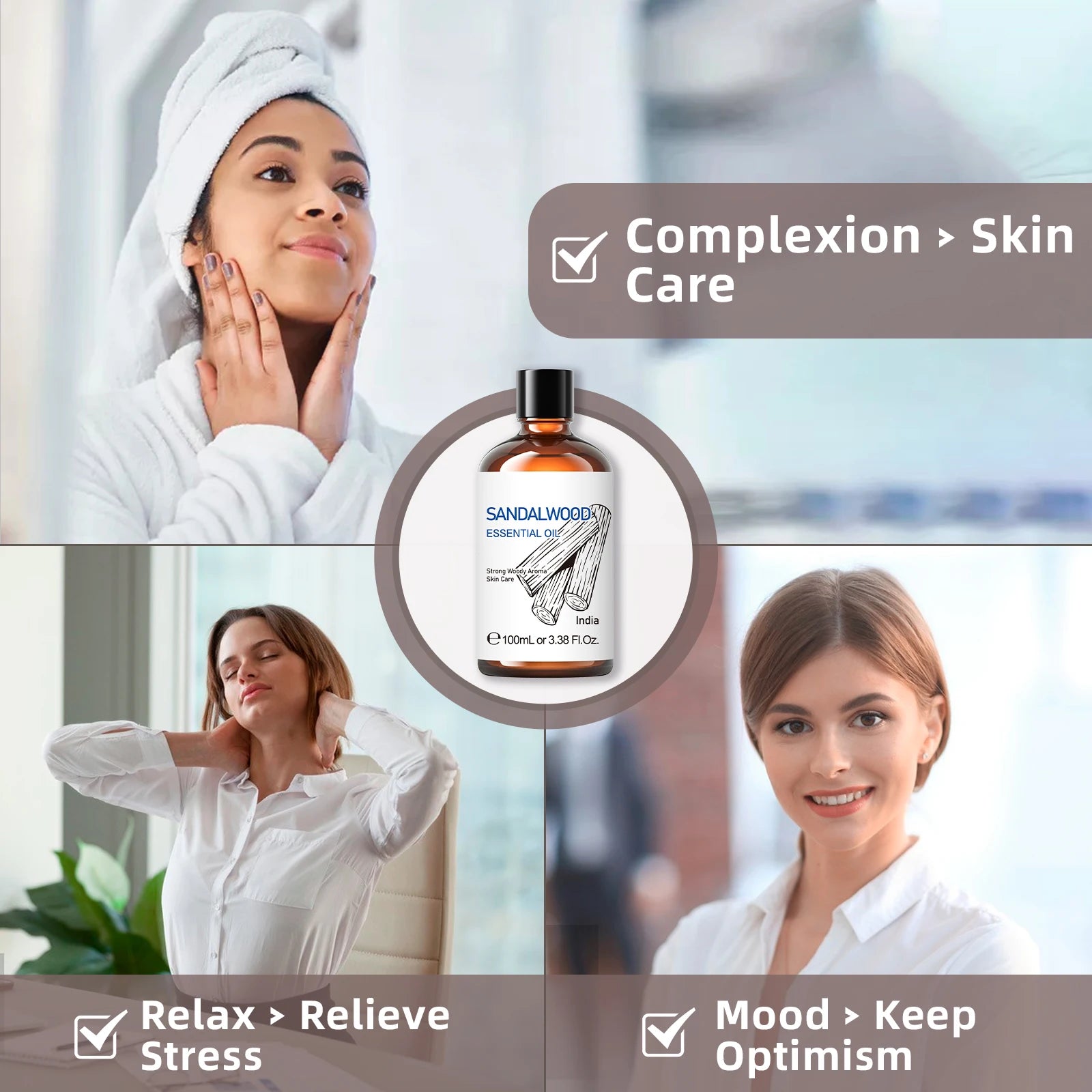 HIQILI 100ML Sandalwood Essential Oils,100% Pure Nature for Aromatherapy, Diffuser, Humidifier, Massage, Meditation, Candle